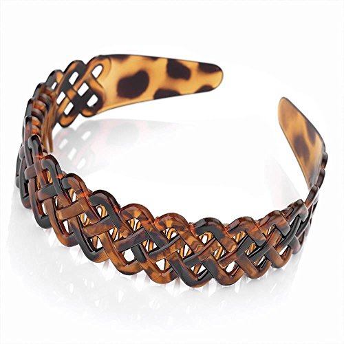 Useful brown tortoiseshell effect head band, alice band with comb inset. Attractive pierced lattice design. Classic hair accessory.