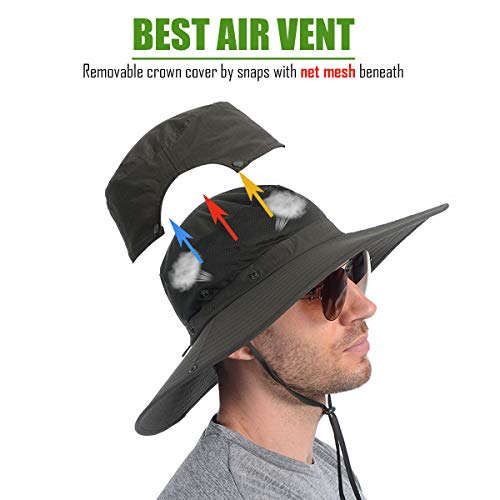 Protezione UV UPF 50+: sono stati utilizzati tessuti ad alta tecnologia, protezione solare UPF 50+ per mantenere la pelle delicata sul collo, orecchie e viso al sicuro dai raggi nocivi, doppia corona con rete interna e rivestimento in tessuto esterno, rimozione gratuita con bottoni a pressione, grande ventilazione e tessuti traspiranti. Oltre ad una parte superiore rimovibile a corona, protegge il viso, la pelle del collo dal sole. Cappello di grande valore che blocca oltre il 98% dei raggi UV dannosi dal sole