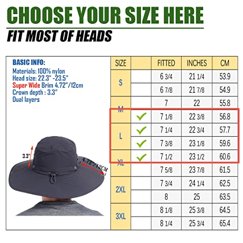 Informazioni sul prodotto: materiale: 100% tessuto di nylon, dimensioni: taglia unica regolabile da 57,4 a 59 cm. Peso netto: circa 200 g. o(UPF): >50, Altre caratteristiche: antivento, impermeabile, ad asciugatura rapida, traspirante, rimovibile Safari Hat UPF 50+ protezione solare cappello Boonie Hat Cap