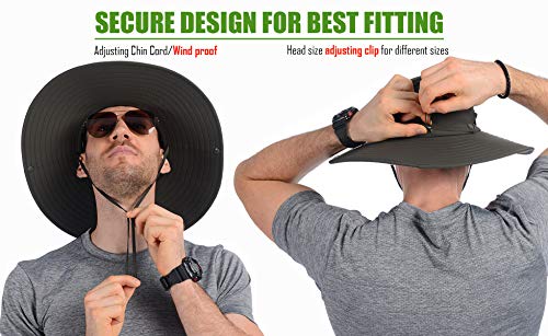 【Antivento e resistente all'acqua: la parte posteriore del cappello è dotata di fibbia di regolazione durevole, design antivento con sottogola regolabile assicura che il cappello rimanga messo anche in condizioni di vento. Il materiale resistente all'acqua lo permette di essere utilizzato anche nei giorni di pioggia leggera. Fornisce una buona ombreggiatura per un uso quotidiano regolare e attività all'aria aperta, soprattutto come passeggiate, pesca, caccia, golf, tennis, campeggio, ricerca all'aperto, baseball, ciclismo.