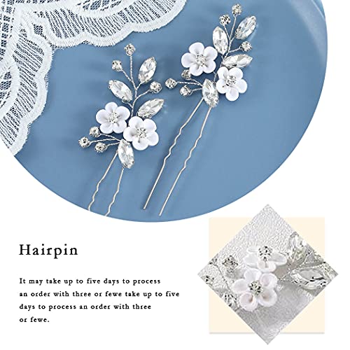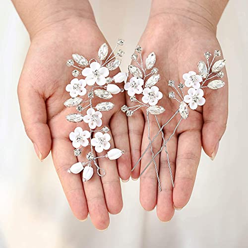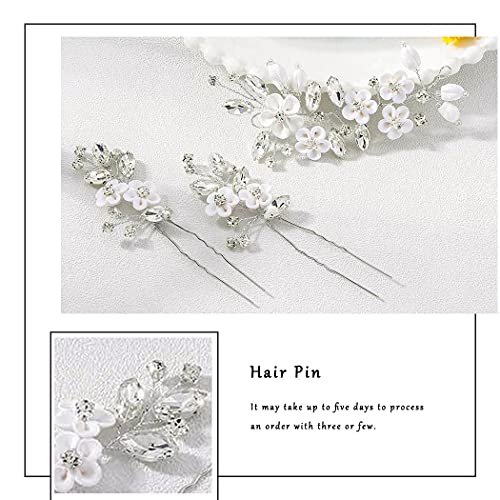 Ushiny Forcine per capelli da sposa in argento fiore per capelli da sposa accessori per capelli clip per spose e damigelle (3PCS)