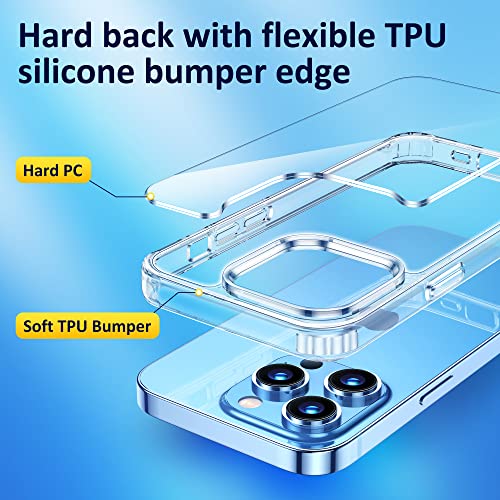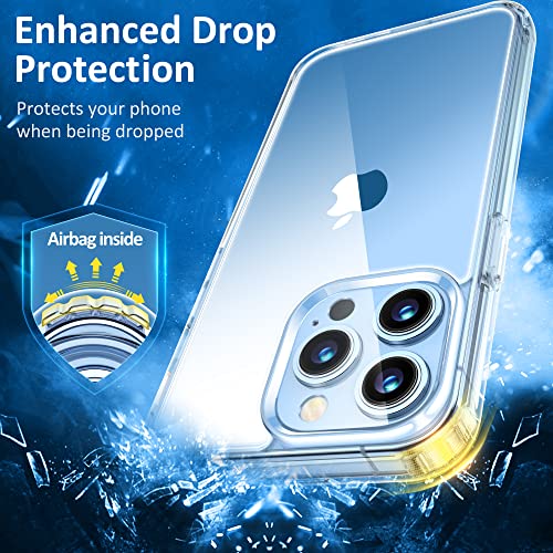 【Cristallo Trasparente】 Questa custodia per iPhone 14 Pro è realizzata in materiale Bayer anti-ingiallimento tedesco e strato antiossidante diamantato, che forniscono una chiarezza di lunga durata, mostra la bellezza originale del tuo telefono.