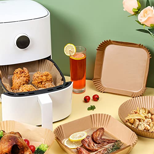 USMEI Carta Forno per Friggitrice ad Aria 16cm,100 Pezzi Fodera in Carta usa e Getta Quadrati,Fodera di Carta Pergamena Impermeabile ad Alta Temperatura per Arrostire in Forno a Microonde