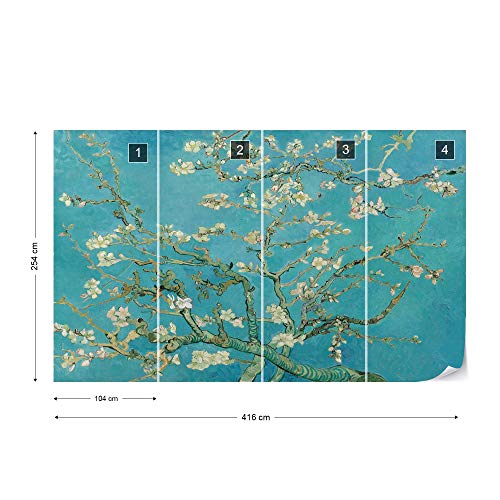 Ustad Home - Carta da parati con fiori di Van Gogh, colore: Turchese