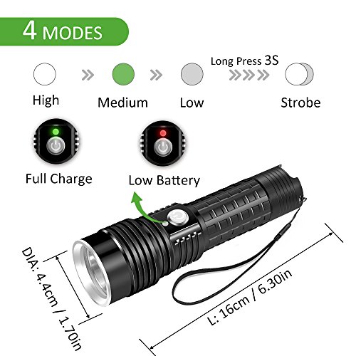 Ustellar Ricaricabile 1200 lumen CREE LED Torch, IP65 Impermeabile, Super Luminoso Torcia Luce, 4 Modalità Torcia, 10W