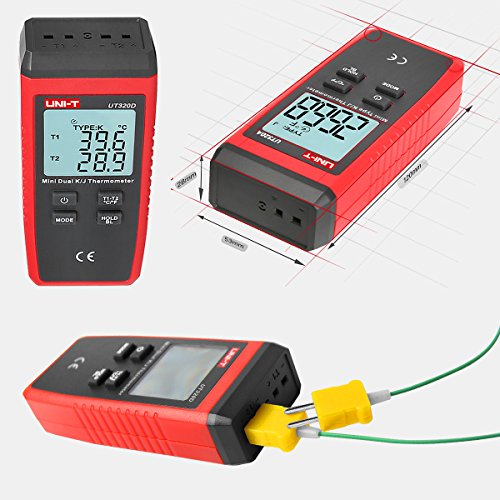 UT320D Mini Contact Type Termometro Dual-channel K / J Termocoppia Meter con retroilluminazione LCD