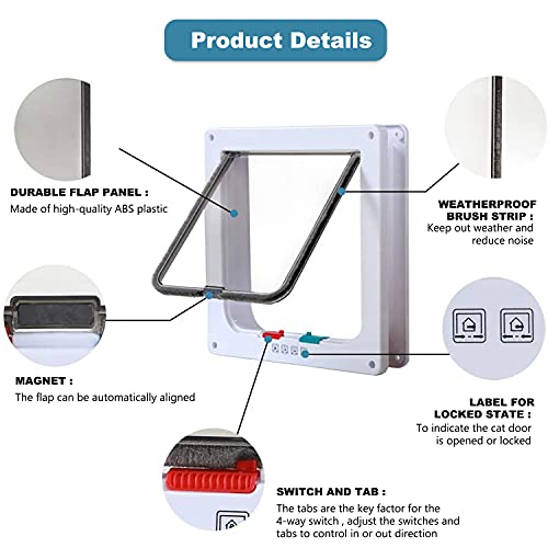 Dimensioni e Materiale: Porta per Gatti e Cani realizzata in robusta plastica ABS, resistente agli agenti atmosferici, la superficie è liscia e resistente. La dimensione interna della porta per gatti con serratura è di 18 cm (L) x 19 cm (A). Adatto per 【peso】