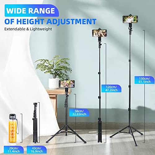 UTEBIT Treppiede Smartphone, Selfie Stick Scalabile a 130cm con Telecomando Senza Fili e Supporto Telefonico Girevole, Bastone Selfie Supporto Cellulare Perfetto per Selfie e Registrazioni Video