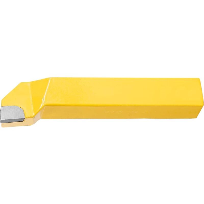 Dotati di inserti in metallo duro rettificati al diamante. Uso: P20/K25 per la lavorazione dell'acciaio e della ghisa (azzurri). M20 per la lavorazione degli acciai inossidabili (gialli). Attenzione: In caso di tagli di sgrossatura e interrotti, si deve affilare il tagliente con un lappatore manuale in carburo di boro (n. art. 558812). Dati tecnici Materiale da taglio M20 Tipo di prodotto Utensili per tornio Lunghezza complessiva, mm 150 Quadro del codolo, mm 25