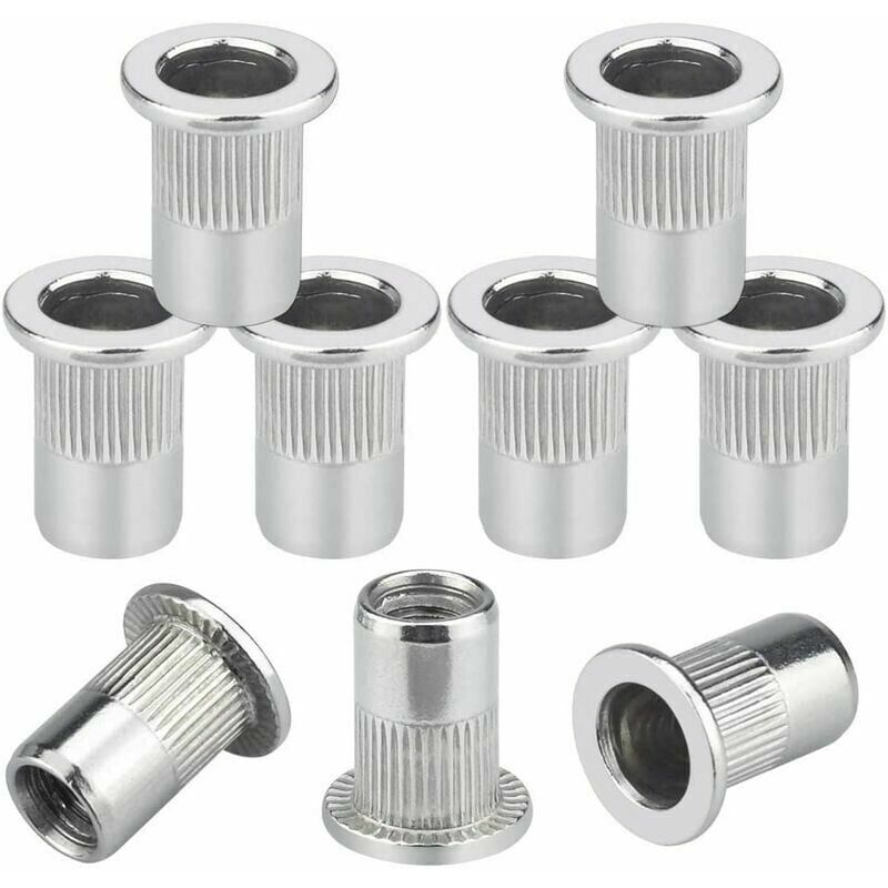 Realizzati in acciaio inossidabile 304 I nostri rivetti in argento sono realizzati in acciaio inossidabile 304 di alta qualità e non arrugginiscono. Non devi preoccuparti della bellezza e della durata degli articoli utilizzati. Dado prigioniero M6: il modello di dado rivetto è m6. Ha una filettatura interna rotonda e un'incisione grossolana all'esterno per un migliore serraggio per garantire una connessione più forte con la vite. La lunghezza è di 15 mm e il calibro è di 9 mm. Zogrinatura e filettatura perfette: la zigrinatura del dado integrata consente al dado di adattarsi saldamente all'oggetto, rendendo difficile lo scivolamento e le filettature interne di alta precisione sono compatibile con viti adatte. Installazione semplice: per la rivettatura, può essere facilmente installato in una varietà di materiali come acciaio, plastica e fibra di vetro. Puoi usarlo per allentare e stringere tutte le volte che è necessario. Usalo come ti serve: puoi usarlo in qualsiasi prodotto in legno