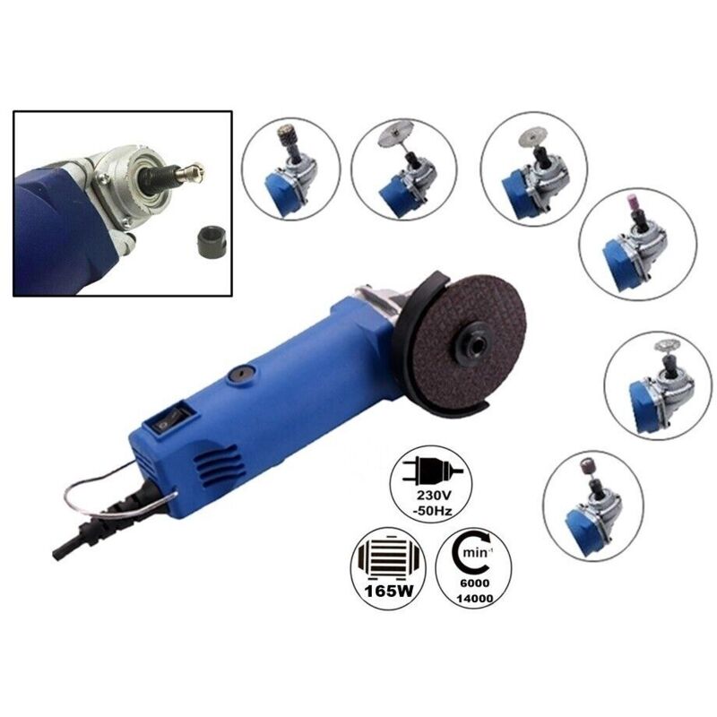 UTENSILE MULTIFUNZIONEMINI TRAPANO + SMERIGLIATRICEANGOLARE 75 mm VELOCITA' VARIABILE.UTENSILE MULTI FUNZIONE AD ALIMENTAZIONE ELETTRICA DI POTENZA 165 WATT.DUE UTENSILI IN UNO: SMERIGLIATRICE ANGOLARE CON DISCO DA TAGLIO E SMERIGLIO DI 75 mm DI DIAMETRO ( 2 DISCHI IN DOTAZIONE). MINI TRAPANO/SMERIGLIATRICE ANGOLARE TIPO DREMEL CON CODOLO DI 3 mm DI DIAMETRO.SI POSSONO UTILIZZARE TUTTI I TIPI DI ACCESSORI PER DREMEL CON GAMBO DA 3 mm DI DIAMETRO.INTERRUTORE ON/OFF E GANCIO PER APPENDERLO.DOTATO DI VARIATORE DI VELOCITA' DA6000 A 14.000 giri/minIN DOTAZIONE:DUE DISCHI DA TAGLIO DA 75 mm2 CARBONCINI MOTORE DI RICAMBIOCHIAVE DI MANUTENZIONEPROTEGGI DISCOPOTENZA 165 WATTFORNITA IN SCATOLA DI CARTONESENZA ACCESSORI