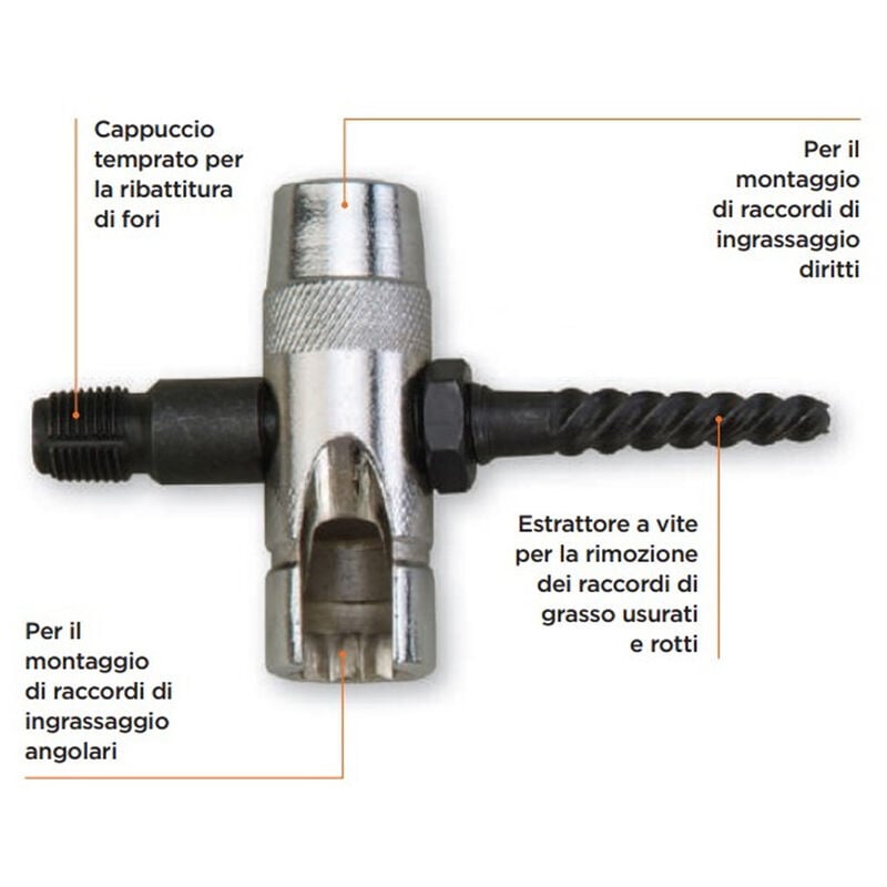 Utensile per nippli ingrassatori GROZ Pratico strumento a doppio uso per:- Rimozione di raccordi di ingrassaggio usurati e rotti- Ribattitura di fori per l'installazione di nuovi raccordi per il grassoFunziona sia con raccordi dritti che angolatiPer nippli con dimensioni esagono: 5/16, 3/8 (7-9mm) Per ribattitura con filetto: 1/4- 28 Prodotto di qualità N.B. ATTENZIONE PER LA SARDEGNA ISOLE MINORI E LOCALITA' DISAGIATE C'E' UN SUPPLEMENTO SULLE SPESE DI TRASPORTO CHIEDERE INFO. LA FATTURA VIENE EMESSA PER ACQUISTI SUPERIORI A 20
