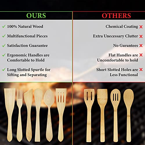 RESISTENZA ALTE TEMPERATURE: il set di utensili da cucina è realizzato in legno in modo che le alte temperature non siano un problema.
