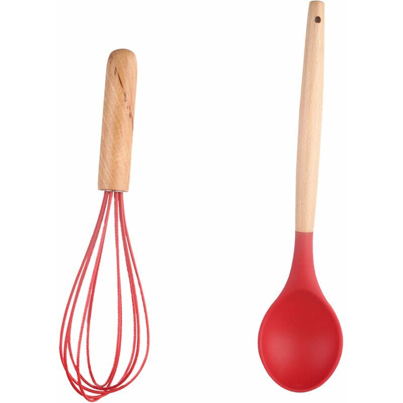 1.UTENSILI E GADGET DA CUCINA PREMIUM.Set 2 pezzi in silicone rosso con manici in legno. 2. ELEVATA RESISTENZA AL CALORE FACILE DA PULIRE. Le pentole antiaderenti possono resistere alle alte temperature. I comodi manici in legno assicurano che anche il manico non sia sopra la testa se lasciato troppo a lungo sulla pentola. Se ciò accade, neanche il silicone si scioglierà: le pentole non si scheggiano, si deformano o si sciolgono come le vecchie pentole di plastica. Il silicone alimentare è facile da pulire e stai certo che nessun cibo si attaccherà alle tue pentole. 3. NON GRAFFIA LE TUE PENTOLE: gli utensili in morbido silicone senza BPA non graffiano, ammaccano o segnano ciotole, pentole e padelle. Il silicone aiuterà la preparazione del cibo in modo più fluido e facile. La spatola in silicone rimuove rapidamente tutto il cibo in pochi secondi da lattine, barattoli e ciotole. Il set di utensili da cucina in silicone è lavabile in lavastoviglie, basta passarlo sotto l'acqua calda