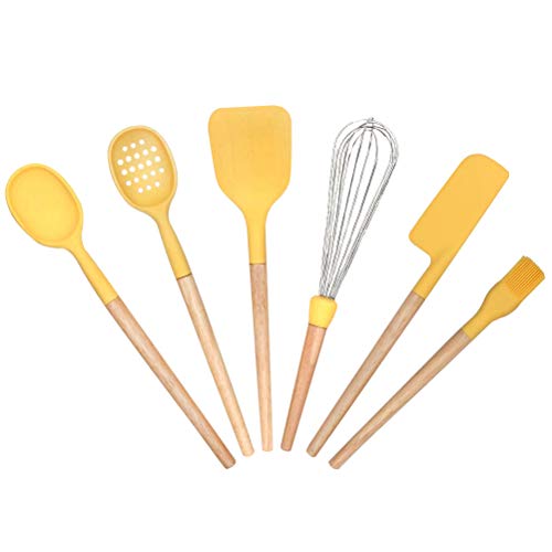Set di utensili da cucina in silicone, antiaderente in silicone resistente al calore cucina gadget strumenti con manici in legno, utensili da cucina, pezzi