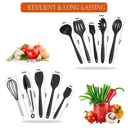 Set 10 utensili da cucina in silicone - Antigraffio,Anti-aderente,Lavabile in lavastoviglie,Resistente al calore,Strumenti e accessori per la cucina ecologici (Nero)