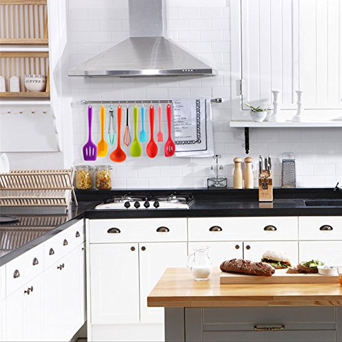 Set utensili da cucina silicone di colori con spatola, cucchiaio, cucharon, schiumarola, Frusta da cucina, Pinza pennello da cucina, 10 pezzi resistente al calore