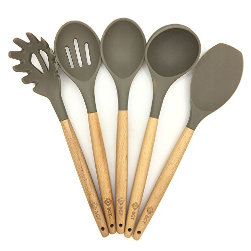 Gli utensili da cucina sono realizzati in silicone alimentare e legno di faggio naturale. Ogni colore del manico è leggermente diverso perché si tratta di legno naturale.