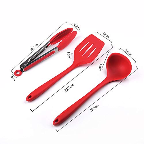 Utensili da Cucina Silicone 10 Pezzi Resistente al Calore Antiaderente Cucina Cottura, Tenaglie,Frusta, Pennello,Spatola,Cucchiaio Fessurato,Noodle Cucchiaio,Scanalato Spatola