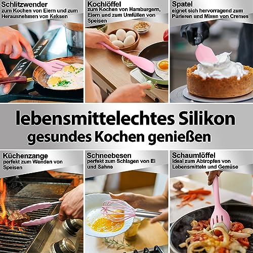 Materiali sicuri ed ecologici: realizzati in silicone e non graffiano o ammaccano le pentole antiaderenti, ogni accessorio da cucina ha un piccolo foro all'estremità del manico per appenderlo facilmente alla parete. È realizzato in silicone alimentare senza sostanze pericolose, resistente al calore fino a 210 °C / 450 °C, non dovrai più preoccuparti che la parte in silicone si sciolga nel cibo durante il processo di cottura