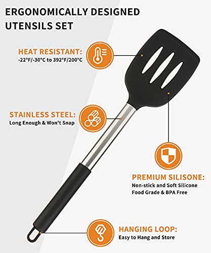 Set di utensili da cucina in silicone 200 °C, resistenti al calore, lavabili in lavastoviglie, utensili da cucina per cucinare con manico in acciaio inox, utensili da cucina, set di pentole