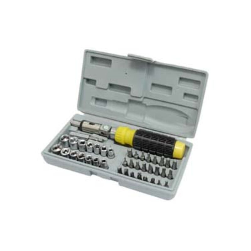 Componenti in acciaio cromato, contenuto: 7 chiavi a bussola esagonali quadro 1/4 misure mm.6-7-8-10-11-12+ 7 bussole esagonali quadro 1/4 misure in pollici 7/32-1/4-5/16-11/32-3/8 -7/16-1/2 + 24 inserti assortiti con punta a taglio/pozdrive/torx/esagonale + 1 giravite portainserti mm.200 reversibile con cricchetto a snodo e impugnatura in gomma antiscivolo + 1 prolunga magnetica portainserti +1 cassetta in plastica misure mm.210x110x40h. Categoria merceologica: Giraviti - Utensili manuali - Giraviti a cricchetto in serie