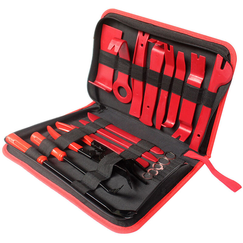 Caratteristiche: Realizzato in materiale di alta qualità, non si rompe facilmente o si piega, resistente all'usura e durevole. 19 kit per soddisfare esigenze diverse Diverse forme di angoli in plastica possono essere applicate alla maggior parte dei bordi e curve complesse. Adatto per lo smontaggio o il montaggio di autoradio / radio per auto, pannelli di porte, modanature, clip di fissaggio, luci sul tetto, aree di controllo di CD audio, finiture di finestre o riparazioni di interni di auto e riparazioni di mobili specifiche tecniche: Materiale: PP Colore rosso Formato del pacchetto: 32 * 23 * 5 cm / 12.60 * 9.06 * 1.97 pollici Peso del pacchetto: 1029 g / 36,30 once Elenco dei pacchetti: 11 * Strumenti di smontaggio del rivestimento interno 3 * Strumenti di rimozione del terminale auto 2 * Strumenti di rimozione stereo 2 * dispositivo di rimozione del dispositivo di fissaggio in plastica 1 * pinza per rimozione clip 1 * custodia