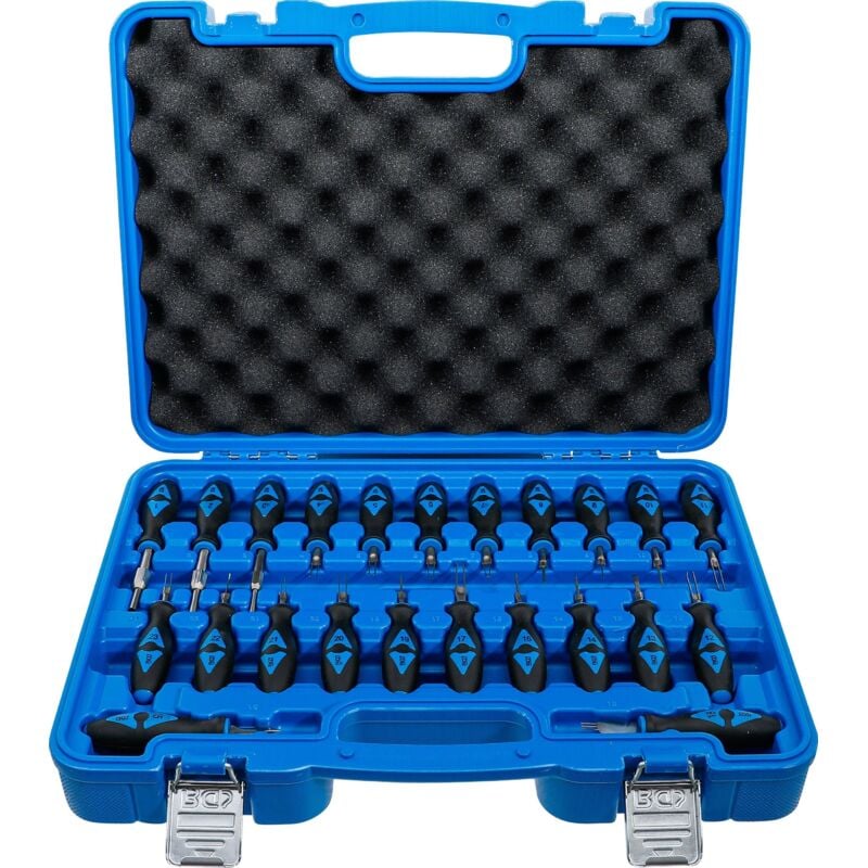 Assortimento universale per quasi tutti i tipi di veicoli Per sbloccare senza danni spine e connettori elettrici, ad esempio per ABS, sensori dell'aria condizionata, radio, PDC, modulo di aggancio del rimorchio e molto altro. I guasti dovuti alla corrosione o ai difetti di connessione possono essere rimossi rapidamente Adatto per spine tonde e piatte Indispensabile per meccatronici ed elettrauti Peso del tessuto 1.7 Dimensioni dell'imballaggio 1 Peso lordo 1700 g