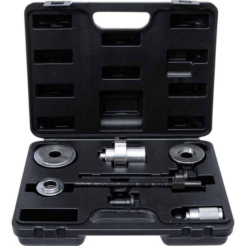 Per smontare e sostituire in modo facile e sicuro le boccole di gomma (blocchi silent) sul veicolo Non occorre smontare le parti, ciò riduce riduce al minimo i lavori Contiene mandrini, prolunga dei mandrini, dado con spallamento, adattatore del mandrino M10x1,25 in acciaio al carbonio S45C Il distanziatore, il pezzo pressato e l'anello di centraggio sono realizzati in una speciale lega di alluminio che li consente di Peso del tessuto 3.226 Dimensioni dell'imballaggio 1 Peso lordo 3226 g