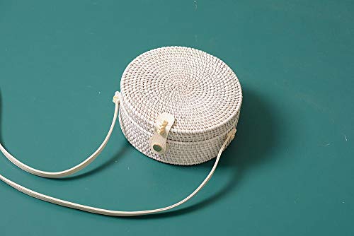 Uteruik Borsa a tracolla rotonda in rattan Borsa a tracolla bianca a mano intrecciata a mano Borsa a tracolla in paglia con chiusura in rattan, 1 pz (#C)