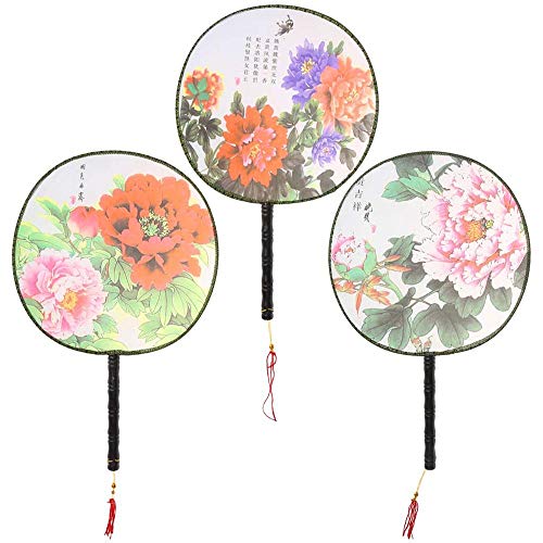 Uteruik, Ventaglio portatile rotondo in stile cinese con nappa, 3 pezzi