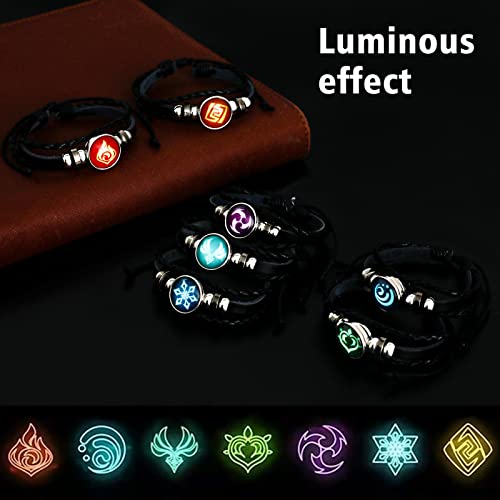 UTIEHD Genshin Impact Bracciale 7 Pack, Bracciale Luminoso Anime, Braccialetti Luminosi Element Glow in Dark, Bracciale Vision Gem di Fuoco, Ghiaccio, Vento, Erba, Roccia, Tuono, Acqua