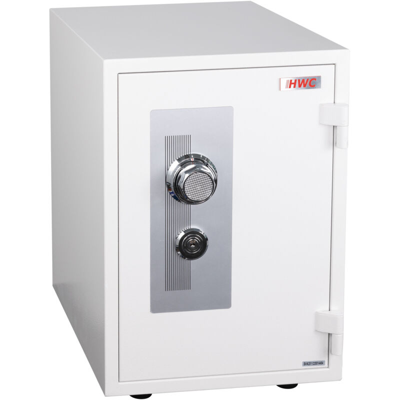 Merce non controllata da reso Cassaforte ignifuga (60 min) con serratura e combinazione numerica a 4 cifre modello HHG-399 acciaio e cemento versione 20L 52x36x39cm colore BIANCO Questa cassaforte ignifuga ti offre la soluzione ideale per custodire in sicurezza i tuoi preziosi documenti e averi. Con un'elevata capacità (19, 20, 39, 48 litri a seconda della versione) questa cassaforte offre spazio sufficiente per i tuoi documenti più importanti. Lo sportello in acciaio della cassaforte è dotato di una robusta serratura a doppio chiavistello, che garantisce il massimo livello di sicurezza. I due robusti perni di chiusura in acciaio con un diametro di 1,6 cm assicurano che la cassaforte rimanga ben chiusa e impedisca l'accesso indesiderato. Per una maggiore sicurezza, la cassaforte ha una doppia sicurezza composta da una serratura e da un codice a 4 cifre. Per aprire la cassaforte servono sia la chiave che il codice. Se hai solo il codice o solo la chiave, la cassaforte non può essere