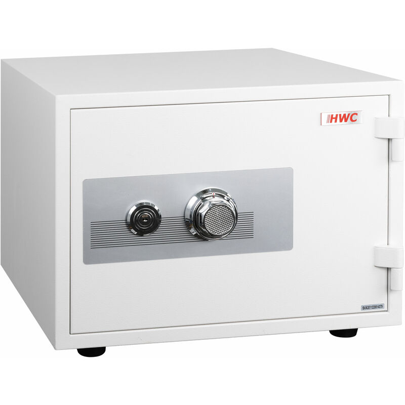 Merce non controllata da reso Cassaforte ignifuga (60 min) con serratura e combinazione numerica a 4 cifre modello HWC-L48 acciaio e cemento versione 19L 38x50x44cm colore BIANCO Questa cassaforte ignifuga ti offre la soluzione ideale per custodire in sicurezza i tuoi preziosi documenti e averi. Con un'elevata capacità (19, 20, 39, 48 litri a seconda della versione) questa cassaforte offre spazio sufficiente per i tuoi documenti più importanti. Lo sportello in acciaio della cassaforte è dotato di una robusta serratura a doppio chiavistello, che garantisce il massimo livello di sicurezza. I due robusti perni di chiusura in acciaio con un diametro di 1,6 cm assicurano che la cassaforte rimanga ben chiusa e impedisca l'accesso indesiderato. Per una maggiore sicurezza, la cassaforte ha una doppia sicurezza composta da una serratura e da un codice a 4 cifre. Per aprire la cassaforte servono sia la chiave che il codice. Se hai solo il codice o solo la chiave, la cassaforte non può essere