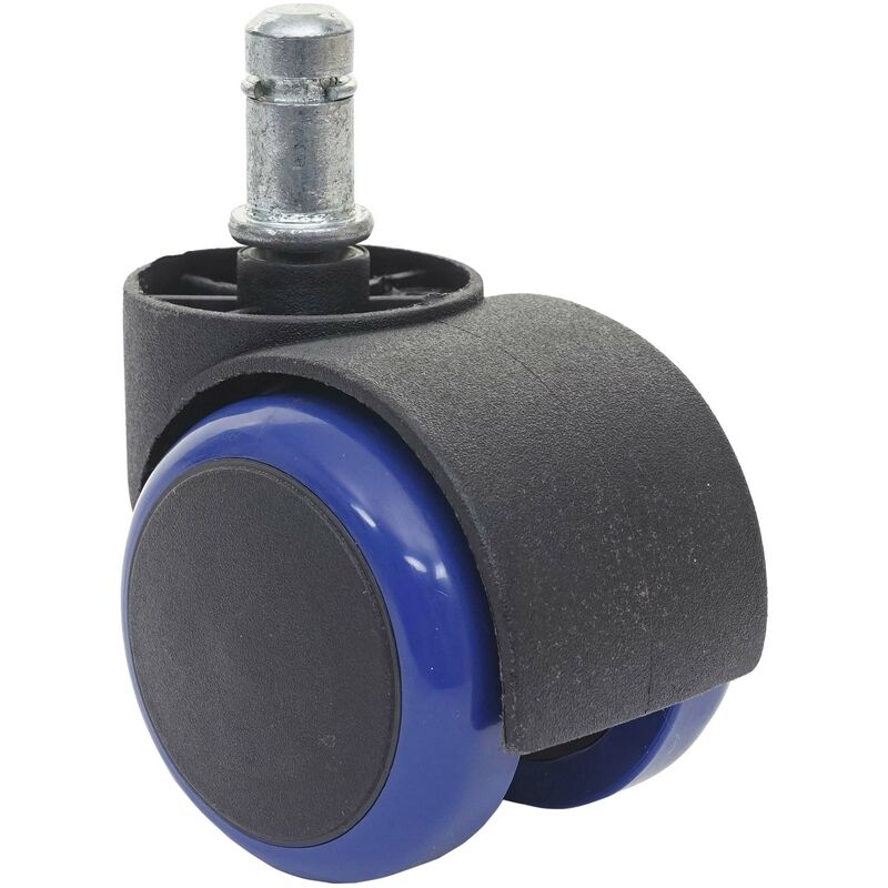 Merce non controllata da reso Set 5x ruote per sedie girevoli modello HWC-H86 50mm colore BLU Volete sistemare la vostra sedia da ufficio senza acquistarne una nuova? Con questo set di ruote rimetterete in sesto la vostra vecchia sedia! piedi PIN 11mm di diametrodiametro rullo 5cm molto resistenti all'usura adatto per pavimenti duri (marmo, piastrelle, parquet e laminati) adatto per essere applicato a poltrone da ufficio Materiale: plastica rivestita in poliuretano, metallo dimensioni (ca.): altezza: 86mm diametro pin: 11mm diametro rullo: 50mm larghezza: 55mm profondità: 70mm carico massimo: 150kg peso complessivo 5 ruote: 0,5kg