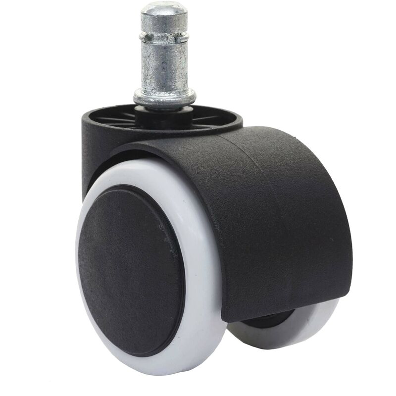 Merce non controllata da reso Set 5x ruote per sedie girevoli modello HWC-H86 50mm colore BIANCO Volete sistemare la vostra sedia da ufficio senza acquistarne una nuova? Con questo set di ruote rimetterete in sesto la vostra vecchia sedia! piedi PIN 11mm di diametrodiametro rullo 5cm molto resistenti all'usura adatto per pavimenti duri (marmo, piastrelle, parquet e laminati) adatto per essere applicato a poltrone da ufficio Materiale: plastica rivestita in poliuretano, metallo dimensioni (ca.): altezza: 86mm diametro pin: 11mm diametro rullo: 50mm larghezza: 55mm profondità: 70mm carico massimo: 150kg peso complessivo 5 ruote: 0,5kg