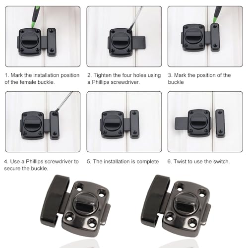 UTMACH 2 Pezzi Serratura per Porta Rotante Serratura Porta Interna Rotante Bolt Latch in Lega di Zinco per Porta in Legno Serratura Bagno Rotante Scorrevole Bullone con 12 Viti,Nero