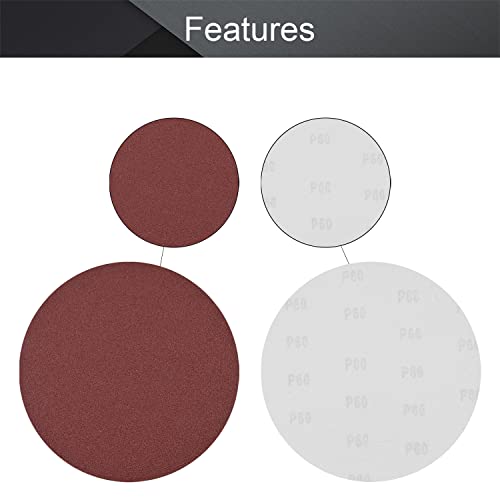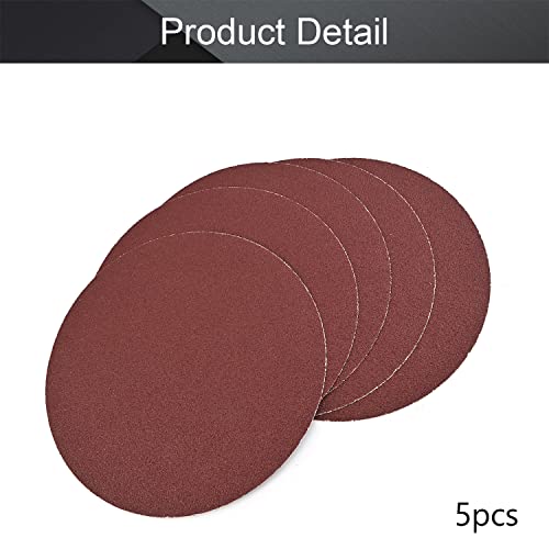 Utoolmart - Carta vetrata autoadesiva in ossido di alluminio, diametro 20,3 cm, grana 60, per levigatrice orbita casuale per legno, metallo, lucidatura a secco, colore rosso, 5 pezzi