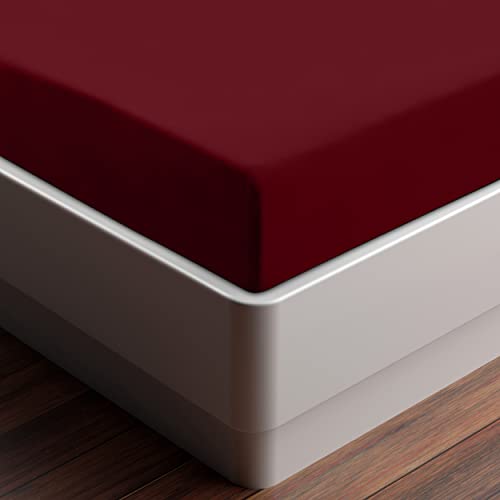 Utopia Bedding Lenzuolo con Angoli Una Piazza e Mezza Francese - 140x200cm - Bordeaux - Microfibra di Poliestere Spazzolato - Lenzuolo Sotto con Angoli Elasticizzato