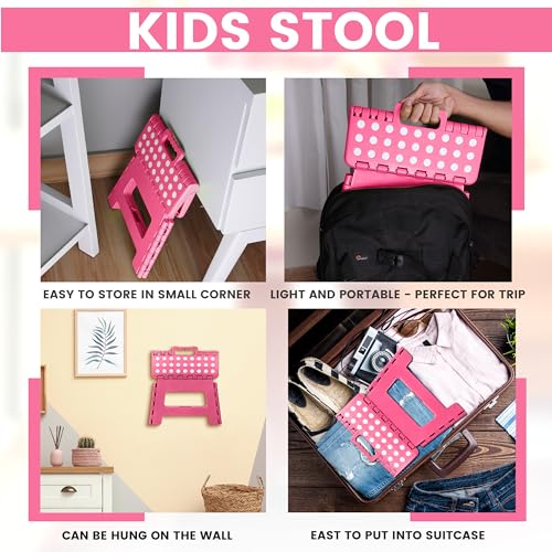 Utopia Home Sgabello pieghevole per bambini - Sgabello Sostiene fino a 300 libbre - sgabello pieghevole alto in plastica leggera per cucina, bagno e soggiorno (Rosa, 1)