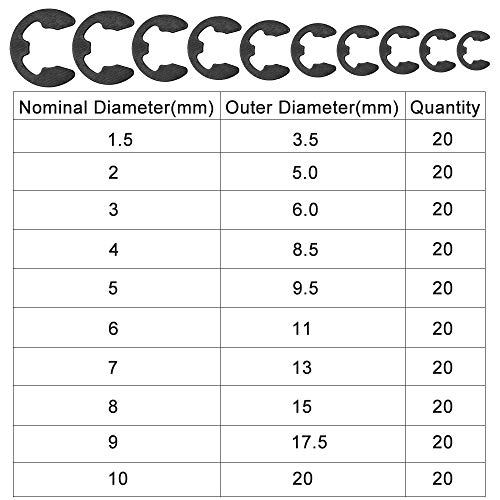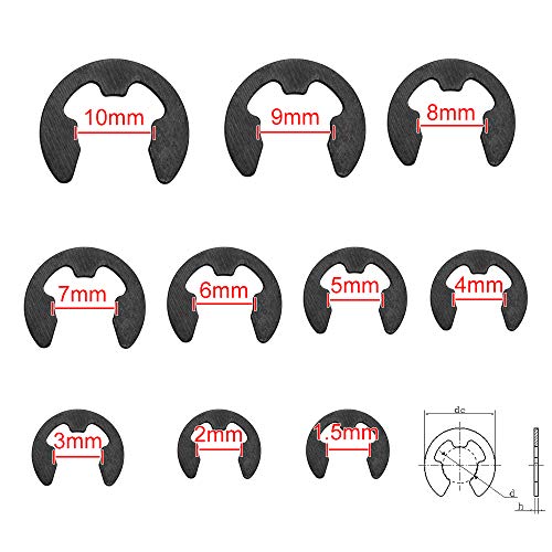 [Anelli elastici di ritenzione assortiti] -La confezione contiene 10 diverse dimensioni di anelli elastici E-clips, inclusi M1.5, M2, M3, M4, M5, M6, M7, M8, M9 e M10 per qualsiasi tipo di utilizzo. 12 pezzi di ogni dimensione, sufficienti per soddisfare le tue esigenze quotidiane, è un accessorio indispensabile.