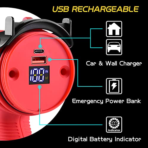 Utry Torcia LED Ricaricabile alta potenza torcia elettrica 2000 Lumens portatile IP67 impermeabile Luce LED con display di potenza (Rosso)