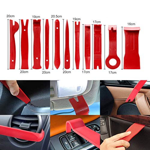 Questo set di utensili UTSAUTO include 40 diversi tipi di strumenti di rifilatura, che è il kit più completo e durevole, ideale per l'installazione o rimozione di impianti audio/radio per auto, pannelli di porte, modanature, emblemi, rivestimenti per finestre o riparazioni di interni automobilistici e restauro di mobili.