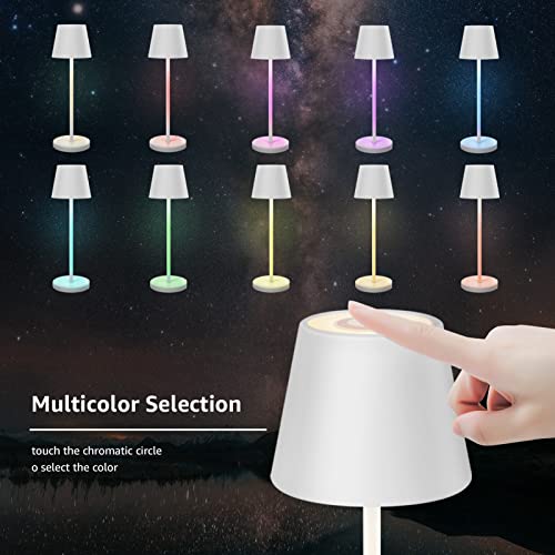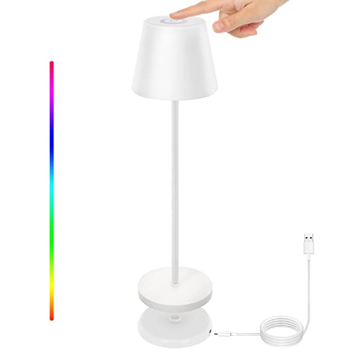 Uuffoo Lampada da tavolo ricaricabile da esterno LED Dimmerabile Wireless Touch Lampada da tavolo IP54 RGB con base di ricarica Adatto per camera da letto, lettura, lavoro, bar, ristorante. (Bianco)