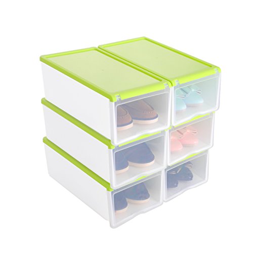 UUHOME 6 x Scatola Scarpe Apertura Frontale Plastica Impilabili Armadio Trasparente Uomo Donna Verde PN66