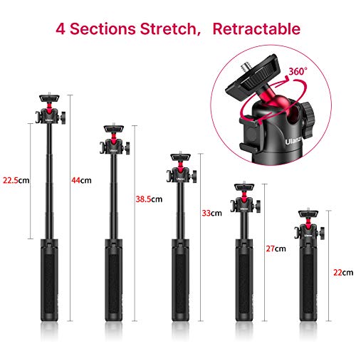 Mini treppiede leggero e compatto: il treppiede allungabile ha il livello 4, il più lungo è di 44 cm, il più corto di 22 cm. Il mini treppiede è molto compatto e può essere riposto in una borsa o in uno zaino. Supporto per smartphone/DSLR/fotocamera.
