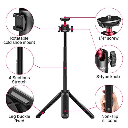 UURig MT-16 Treppiede estensibile 4 livelli di regolazione sezioni allungate, mini treppiede a 360° in metallo testa a sfera con treppiede freddo per fotocamera/telefono