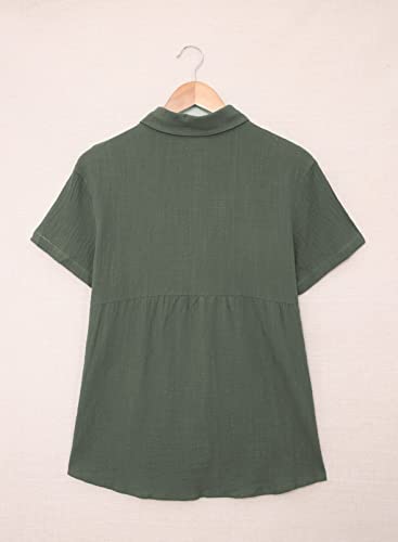 Camicetta da donna a maniche corte, con bottoni, scollo a V, tinta unita, vestibilità larga e colletto a risvolto, la camicia è molto alla moda ed elegante.