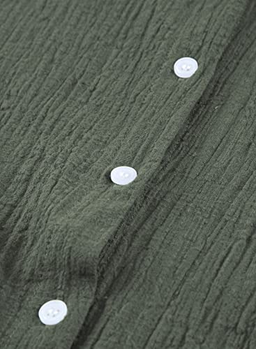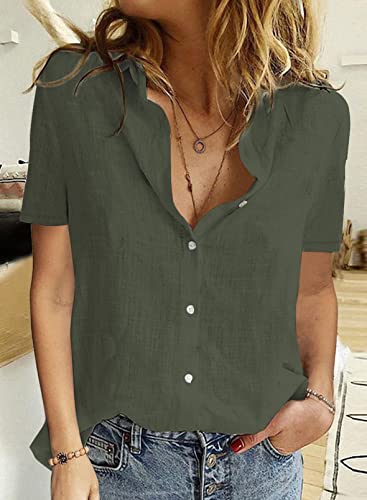 Uusollecy Camicia estiva da donna, a maniche lunghe, con scollo a V, casual, in cotone, a maniche lunghe, tinta unita, per donne e ragazze, B-verde., M