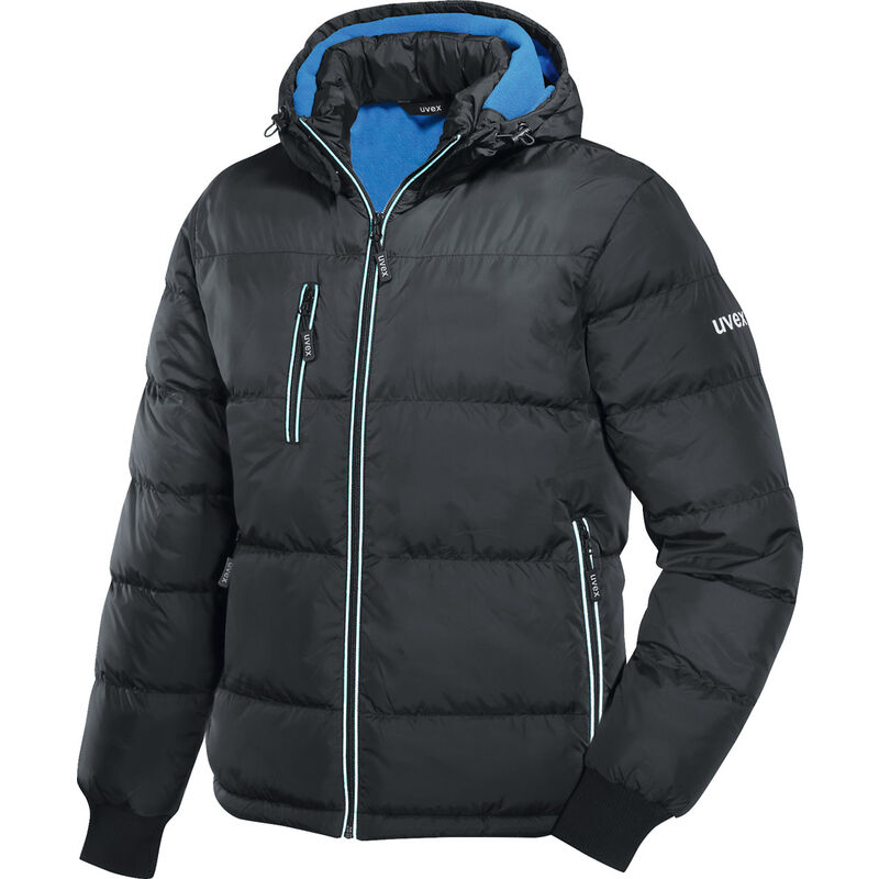 Moderna giacca termica trapuntata perfetta per la stagione fredda. Con confortevoli polsini a coste. 100% poliammide con rivestimento impermeabile in PU e imbottitura 100% poliestere. Buona vestibilità grazie alla parte posteriore allungata e alla coulisse regolabile. Con accenti cromatici grazie alle strisce blu riflettenti e al pile blu all'interno. * Colletto alla coreana con cappuccio regolabile e staccabile. * Chiusura lampo a una via in plastica. * Tasca pettorale con chiusura lampo. * Tasche interne con chiusura a strappo. * Tasche laterali con chiusura lampo. Dati tecnici Lavaggio Lavaggio delicato 30 °C Composizione del tessuto 100% poliammide Colore nero / blu Tipo di prodotto Giacca termica Serie Giacche termiche Uvex Servizio speciale Personalizzazione dell'abbigliamento Genere da uomo Taglia unisex M